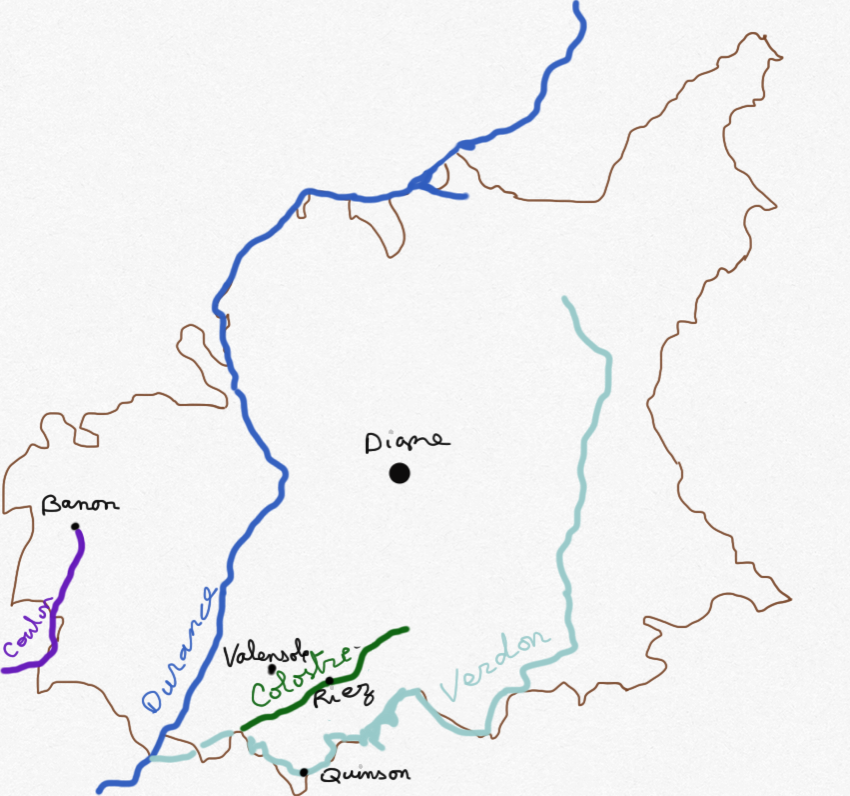 Et une rivière dont je viens de découvrir l’existence et qui a son importance aussi, le Colostre, dans les Alpes de Haute Provence, qui prend sa source vers Saint-Jurs et se jette dans le Verdon vers Gréoux-les-Bains.